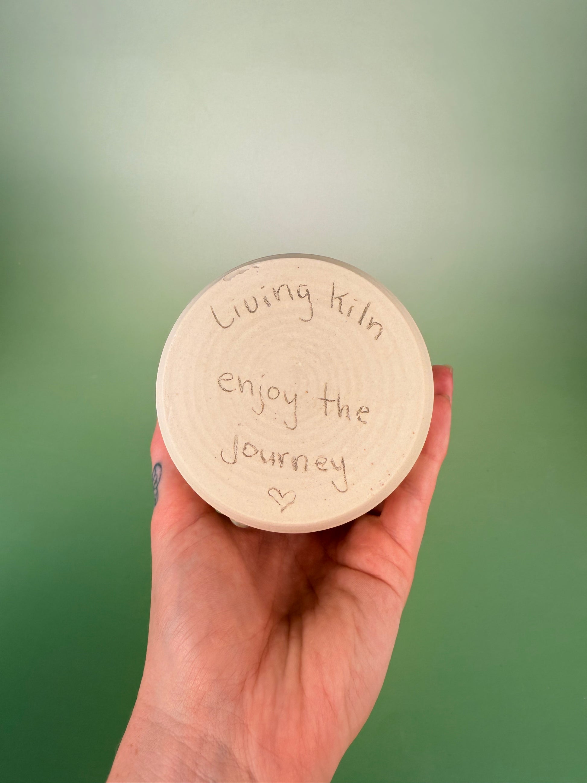 4 inches H, 3 inches W. 12 oz. Food safe.