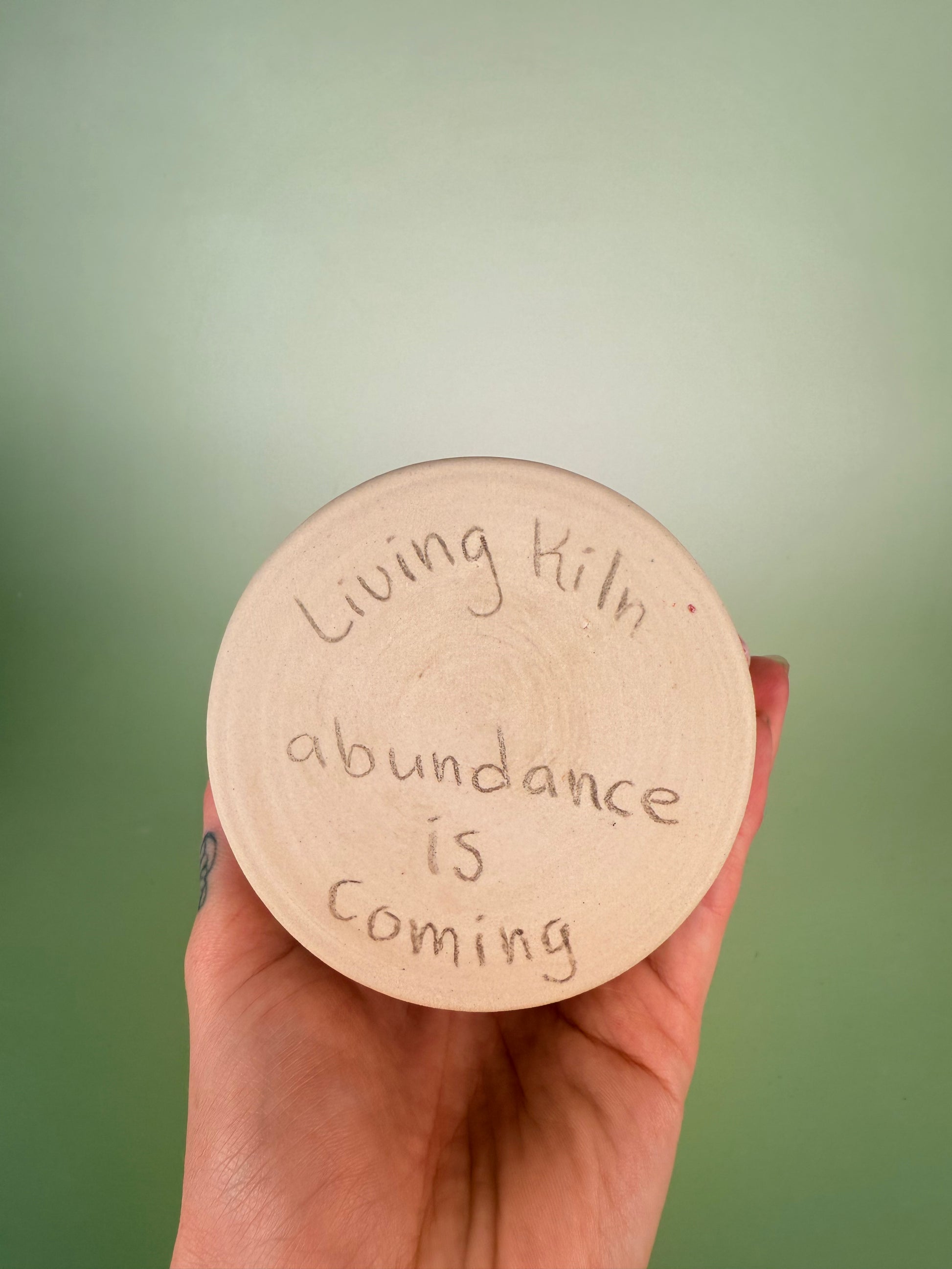 4 inches H. 3 inches W. 11.5 oz. Food safe.