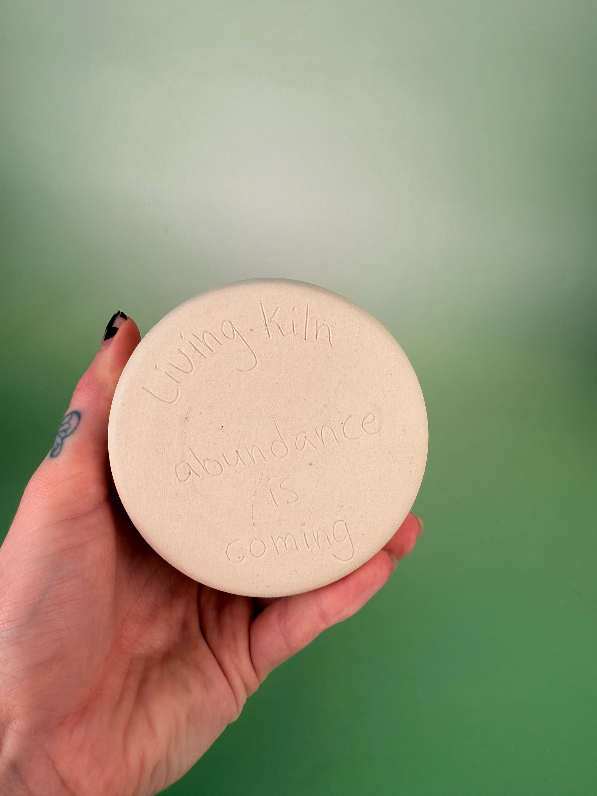 4.5 inches H. 3 inches W. 15 oz. Food safe. Black sparkly glaze is not microwave safe. *fine crack on bottom, does not effect the cup*